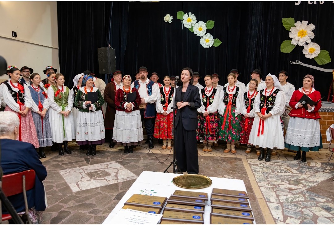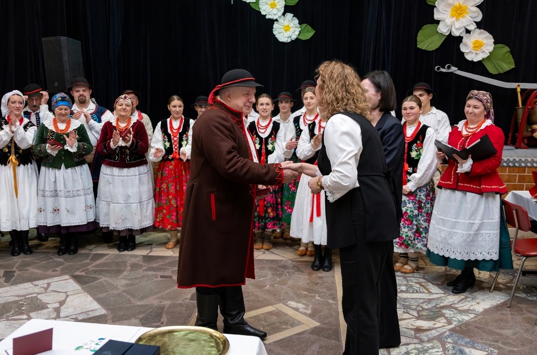 Wielka Dama Folkloru Lachów Limanowskich - niezrównana strażniczka tradycji, artystka serca i ducha, legenda sceny ludowej od ponad półwiecza! Z folklorem Lachów Limanowskich związana od 1969 roku - od chwili, gdy po raz pierwszy stanęła na scenie jako tancerka Zespołu Pieśni i Tańca „Limanowianie”, aż po dziś dzień, nieprzerwanie służy kulturze i dziedzictwu swojego regionu z pasją, oddaniem i niezłomną determinacją. Jej wkład w pielęgnowanie, dokumentowanie i rozpowszechnianie tradycji Lachów nie ma sobie równych - zarówno pod względem artystycznym, jak i edukacyjnym. Jako solistka - olśniewała sceniczną charyzmą. Jako instrumentalistka – z pasją wydobywała archaiczne brzmienia z burcoka, dzwonków tonacyjnych pasterskich, sprawiając, że ginące dźwięki lachowskiej wsi rozbrzmiewały na największych scenach świata. W jej wykonaniu melodie Lachów trafiły na anteny Polskiego Radia, stając się bezcennym świadectwem autentycznego folkloru. Nie tylko godnie reprezentowała Ziemię Limanowską na niezliczonych scenach w całej Polsce – była ambasadorką polskiej kultury ludowej za granicą: w 1974 r- Węgry na Międzynarodowym Festiwalem Folklorystycznym -zespół otrzymał ,,Złotego Pawia”, 1975 r,- Hamburg, - udział w obchodach ,,25-lecia Związku Polaków – ZGODA” , 1976r,. – Szwecja – Dni Polskie, 1996r. -Dania – Dni Polskie, 1977r, - Niemcy ,,Dni Polskie”, 1978 r. – Czechosłowacja- Międzynarodowy Festiwal Folklorystyczny w Myjave, 1979 r. – Francja – Udział w Światowym Festiwalu NOEL- w Nancy 1979 r,- Niemcy – Występ dla grupy Polskiej w Finsterwalde, 1988 r – Niemcy- Wyjazd Zespołu na ,,Dni Polskie” do Todtmoss, 1989 r. , Ukraina wyjazd Zespołu na zaproszenie zespołu Karpaty,1993 r. – Włochy- Wymiana kulturalna z miastem Camporgiano , 1994r., - Holandia- wymiana kulturalna w Terheijden, 1994 r- Niemcy – Wyjazd zespołu na Międzynarodowe Targi Turystyczne w Berlinie, 1996 r,- Niemcy występ w ramach Wymiany Kulturalnej, 1999r., -Chiny-Światowy Festiwal Folklorystyczny w Pekinie, 2000r., - Chorwacja- Międzynarodowy Festiwal Zespołów Folklorystycznych w w Monastir, 2000 r- Miedzy na rodowy Festiwal Muzyczny , Światowa wystawa EXPO- 2000 w Hanowrze, 2003r,- Na zaproszenie Polskiej misji Katolickiej w Norymberdze 2006 r- Niemcy – uroczystości związane z urodzajem plonów, 2006r,- Słowacja- Występ Zespołu dla mieszkańców Dolnego Kubina, a nawet w Kuwejwcie 1990 r. – Dni Kultury Polskiej, Światowa Wystawa EXPO -90 Niosła ze sobą dźwięk polskiej pieśni, kolor tradycyjnego stroju i ducha lachowskiej dumy. To właśnie ona – jako znawczyni folkloru, choreografii i gwary – szkoliła artystów legendarnego „Mazowsza”, by mogli włączyć do swego repertuaru żywy folklor Lachów Limanowskich. Jest nauczycielką, mistrzynią i przewodniczką wielu pokoleń młodych tancerzy i muzyków. Niezmiennie wpajała szacunek do stroju, do melodii przodków i do sceny, na której każdy występ był dla niej świętem. Autorka i współautorka wielu widowisk scenicznych, z których niejeden został nagrodzony – jak choćby Srebrna Ciupaga zdobyta w 1994 roku na prestiżowym Międzynarodowym Festiwalu Folkloru Ziem Górskich w Zakopanem. Pod jej okiem powstawały niezliczone płyty, kasety, scenariusze, stroje i dekoracje. Wszechstronna i niezastąpiona – była sercem i duszą zespołu, prawą ręką śp. Ludwika Mordarskiego. Wspierała organizację, dbała o dyscyplinę i motywację młodzieży, była mentorką i opiekunką, oddaną zespołowi aż do 2016 roku. Uhonorowana licznymi odznaczeniami, m.in. „Za zasługi dla Województwa Nowosądeckiego” oraz „Za zasługi dla Miasta i Gminy”, nie spoczęła na laurach. W 2020 roku wkroczyła w szeregi nowo powstałego Zespołu Regionalnego „Starowiejski HYR” w Starej Wsi, gdzie do dziś jest nie tylko aktywną członkinią, lecz także nieocenionym filarem organizacyjnym i artystycznym. Wspiera kierownictwo zespołu, pomaga w działaniach promujących region, dzieli się bezcennym doświadczeniem i niezłomną energią. Wiedza, którą zgromadziła przez dziesięciolecia pracy z zespołem „Limanowianie”, wykraczała daleko poza granice regionu. Krystyna Mól ma niezwykły dar nauczania – nie tylko techniki tańca, ale też jego duszy, kontekstu i znaczenia. Jej umiejętności docenił również renomowany Zespół Pieśni i Tańca „Mazowsze”, który zwrócił się do niej o wsparcie w nauce tańców Lachów Limanowskich. To właśnie dzięki niej Lachowski repertuar zagościł na stałe w programie „Mazowsza” i jest prezentowany przed publicznością do dziś. Jej nauka była nie tylko precyzyjna i profesjonalna, ale też pełna pasji – uczyła z serca, wprowadzając artystów w klimat, rytm i symbolikę każdego kroku. Szczególnym aspektem jej działalności była również edukacja w zakresie gry na dzwonkach pasterskich – instrumentach prostych, lecz głęboko zakorzenionych w tradycji Lachów Limanowskich. Krystyna potrafi wydobywać z nich dźwięki, które oddawały klimat beskidzkiej wsi, a jej uczniowie szybko odkrywali, że za każdą melodią kryje się opowieść o życiu, pracy i duchowości przodków. Dzięki takim działaniom stała się nie tylko twórczynią kultury, ale jej żywym przekazem – pomostem między historią a współczesnością, między lokalnością a narodowym dziedzictwem. W latach 2022, 2023 , 2025 Zespół Starowiejski HYR pokazywał widowiska historyczne z 1935 r. pt. ,,Jako my się uciesyli z łodwiedzin Biskupa’’ i obrzędowe z przełomu XIX/ XX w. pt. ,,Po chrzinach ‘’ i ,,Imioniny u Jona’’ to właśnie Pani Krystyna odegrała szczególną rolę w układania i pisania scenariuszy do tych widowisk dzięki czemu Zespół odniósł ogromne uznanie w konkursach takich jak ,,Limanowska Słaza” w Limanowej zajęcie za każdym razem I miejsca i nominacja do Ł